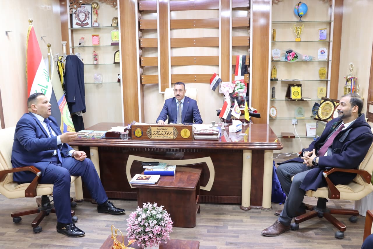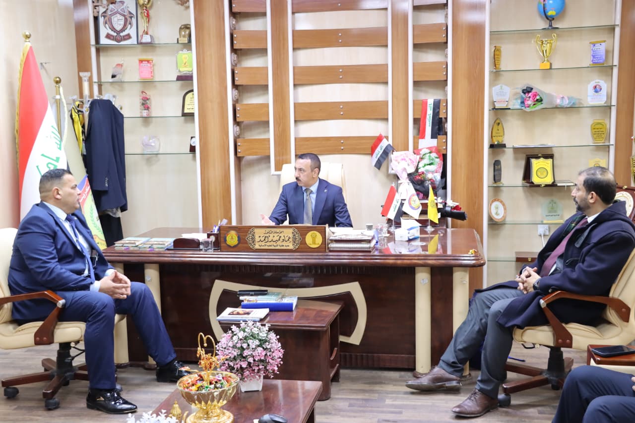 The Dean of the College of Education for Humanities, Prof. Dr. Imad Hamid Ahmed, received today, Tuesday, January 13, 2026, the President of the Andalusian–Morisco Academy in Iraq and the Middle East, Prof. Dr. Murtadha Kamal Al-Yasiri, along with his accompanying delegation. The meeting took place on the sidelines of their participation in the scientific course organized by the College entitled “The Andalusian Muwashshah in Morisco Heritage: Continuity of Form and Transformations of Meaning.”